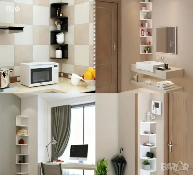 5-етажна етажерка за стена, с остри дизайн за съхранение - подходяща за дневна, спалня, баня, домашен офис. Размери на снимките.