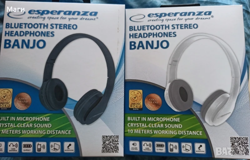 Продавам безжични слушалки Esperanza. Имам налични два броя - бял и черен цвят.