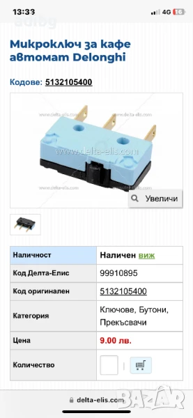 Delonghi - Микроключ 3 крачета Микрошалтер Син 5132105400 → Обява 50483659
