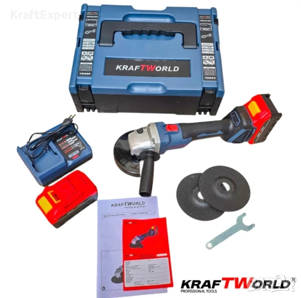 Акумулаторен Ъглошлайф 125мм Kraftworld с 2 Батерии в Куфар