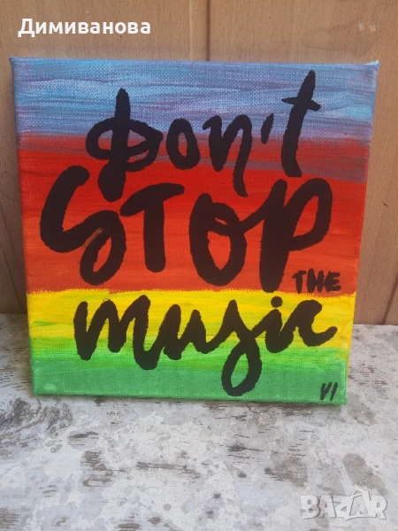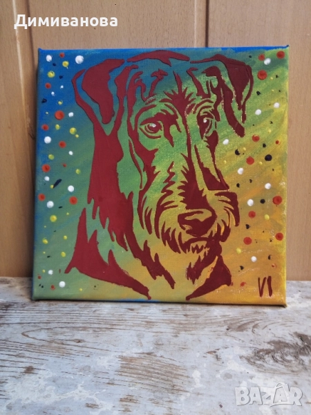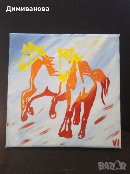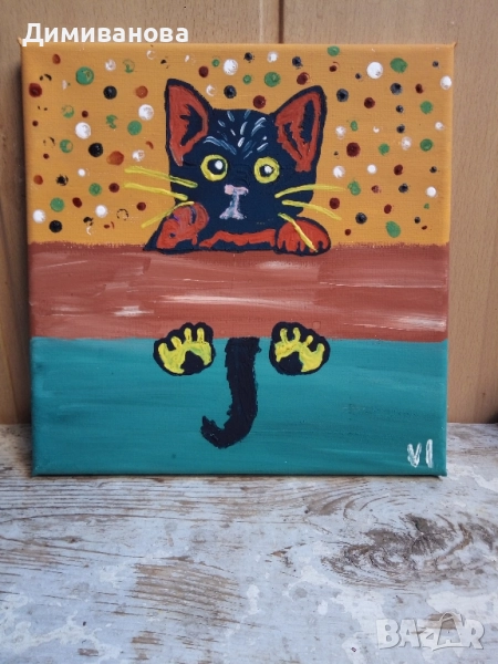 Рисунка върху платно с размер 20х20 см, рисувана с боички.
