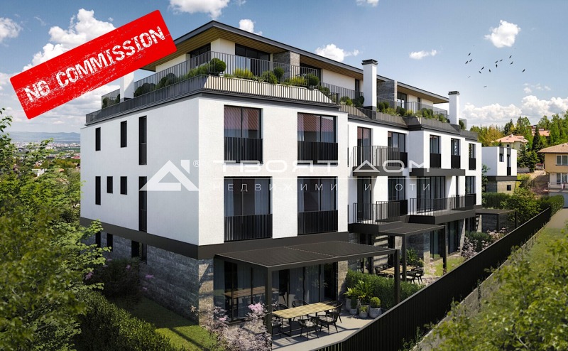 Агенция за недвижими имоти Твоят Дом предлага за продажба апартамент с три спални на две нива със собствен двор-градина в малка бутикова сграда с общо осем апартамента. Сградата е новопостроена на етап Акт 15, с очаквано разрешение за ползване до средата на лято 2025 г. Жилището е ситуирано на партера на сградата, а двора е ориентиран на юг, с гледка към Витоша. Площта на апартамента е 278 кв.м, разпределени както следва: