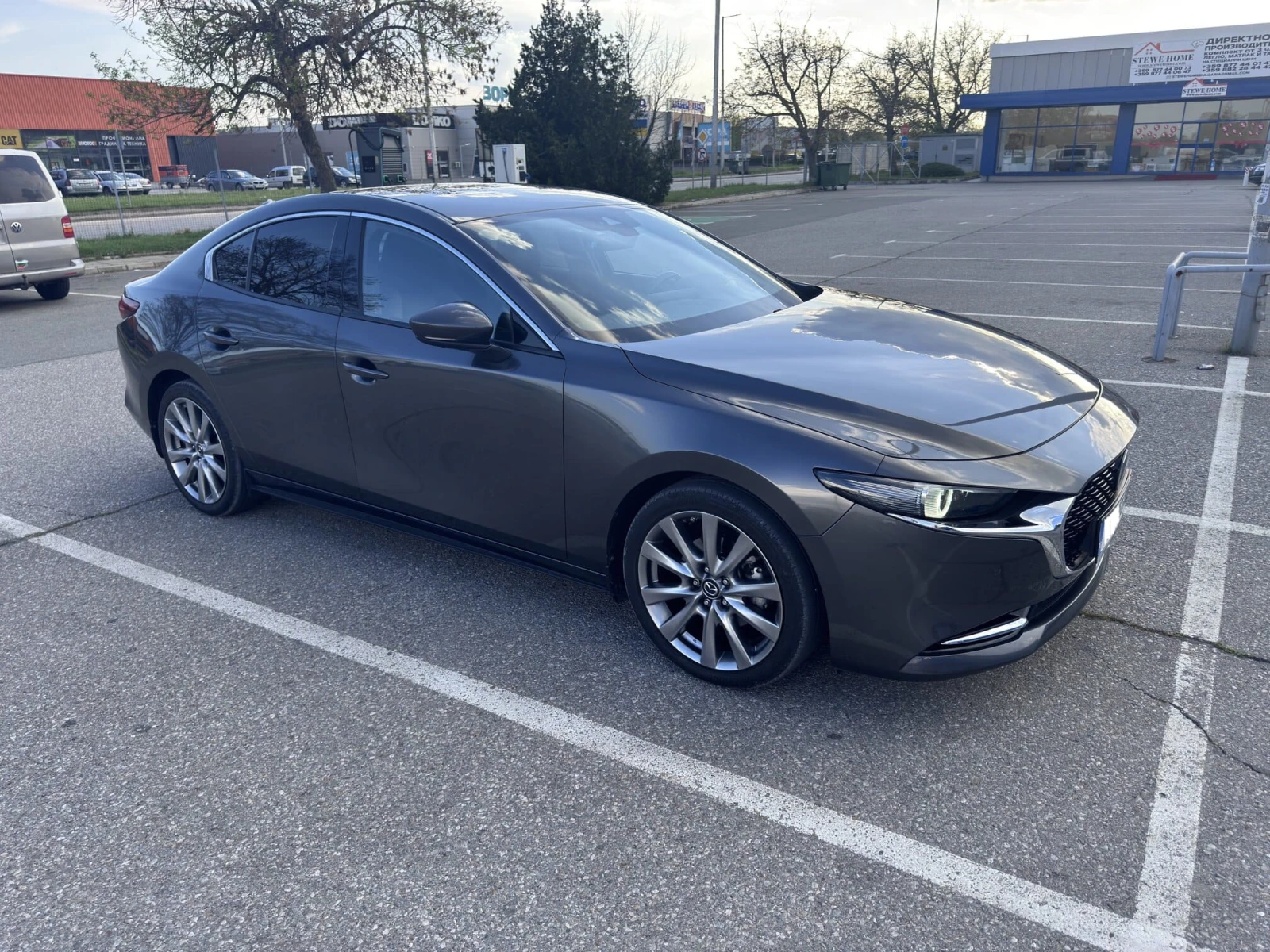 Закупен автомобил от официално представителство с пълна сервизна история. Възможно оформяне на финансиране до 10 /десет/ години. Стандартно оборудван GT+ FULL + Mild hybrid: MRCC (Mazda Adaptive Cruise Control) - Високочестотна от 30 до 300 GHz радарна, адаптивна система за поддържане и регулиране на зададена скорост и дистанция, както да спира и потегля в трафик, TSR (Traffic Sign Recognition) - система за разпознаване на пътните знаци, E - Call System - система за връзка с тел. 112 при аварийна ситуация, G-Vectoring Control Plus (GVC+)- Второ поколение система увеличаваща стабилността на автомобила, намалява умората на водача и пътниците, предпазва от прилошаване на пасажерите в завои, HEAD UP дисплей с холограмна проекция директно на челното стъкло, SCBS (Smart City Brake Support) - система, предотвратяваща сблъсък при движение в градска среда, BSM (Blind Spot Monitoring) - радарна с-ма за следене на мъртвата зона, RCTA (Rear Cross Traffic Alеrt) - система сигнализираща за пресичащи автомобили при маневра на заден ход, Rear Smart City Break Support (SCBS-R) - интелигентна помощ за спиране в градски условия на заден ход, Rear Cross Traffic Brake (RCTB) - автоматично прилагане на спирачка при пресичащи отзад автомобили, автоматични къси и дълги матрични LED светлини, HHA - система за подпомагане при потегляне по наклон, LKA (Lane Keep Assist) - система следяща за отклонение от лентата на движение със звуков сигнал, вибрация и срещуположна корекция на волана, ESP & TCS, TPMS - система следяща налягането на гумите, EPS - ел. усилвател на волана с адаптивно променливо съпротивление, 18 инч. фабрични алуминиеви джанти в цвят GUN METAL, отопление на предните седалки + волана, двузонов климатроник, акустична система подпомагаща паркирането преден и заден парктроник, електро хроматично огледало за обратно виждане, Hi-fi аудиосистема BOSE с 12 високоговорителя и външен усилвател и Bluetooth система, Driver Attention Alert with Camera (DAA) - предупреждение за умора на водача с камера, дигитална 3600 камера за обратно виждане при движение на заден ход, двуцветна кожена тапицерия с перфорация в централната част на седалките, ел. управление на шофьорската седалка с памет. Допълнително оборудване: Комплект стелки, фабрична автоалармена система, последно поколение боя тип Металик с перлен ефект 46G " Liquid Metal" Т. сив перлен металик, фабрична навигационна система MAZDA , Apple CarPlay / Android Auto Unit+. Локация: Стар Моторс ЕООД - град Стара Загора. Лицe за контакти: Илиана Войнова +359899995640 ivoynova@starmotorsmazda. bg