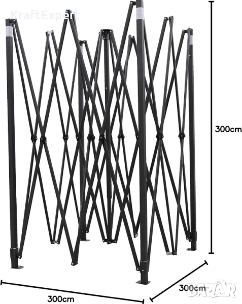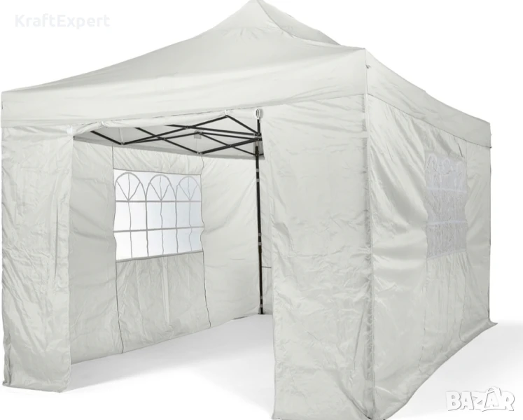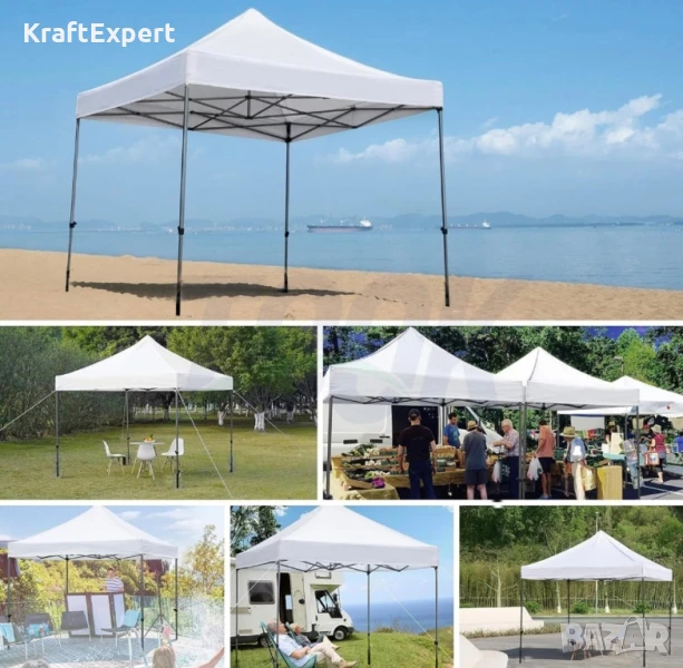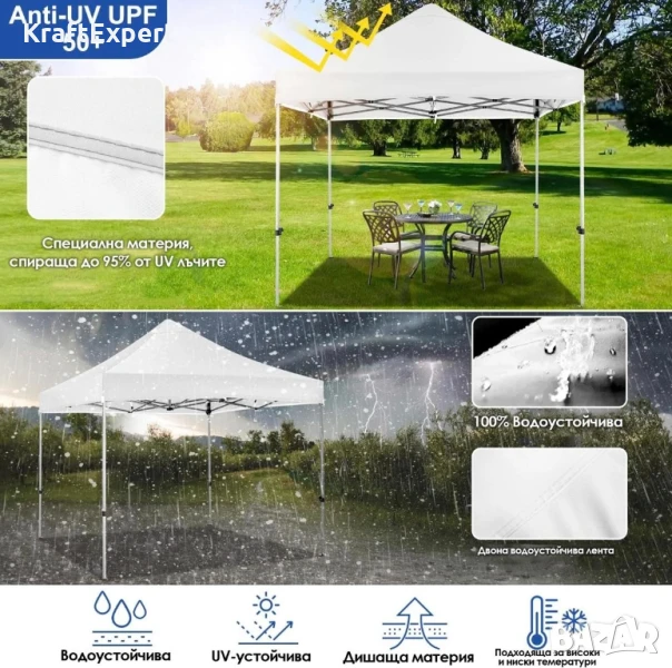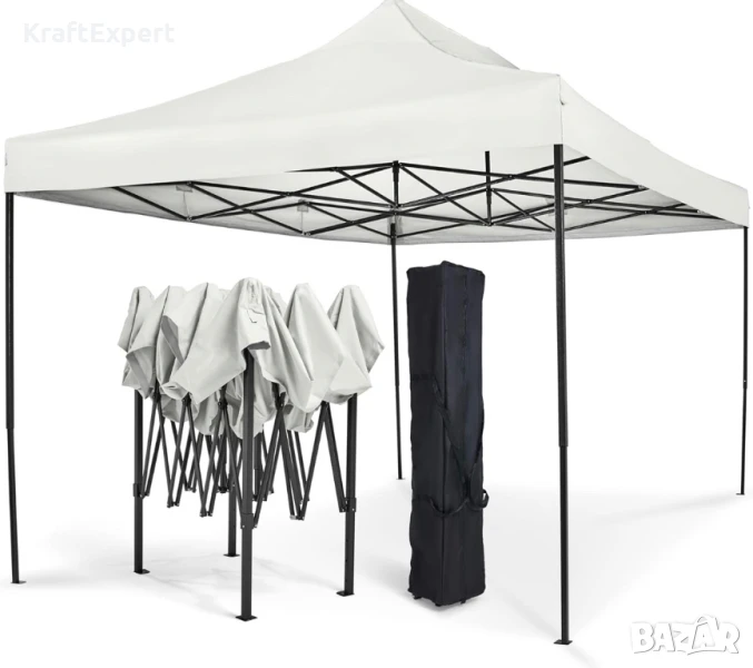 Бяла Сгъваема Градинска Шатра 3×3м тип Хармоника– стабилна, водоустойчива и лесна за разпъване