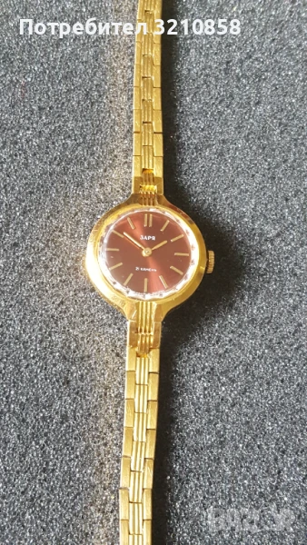 Много запазен неразличим ат нов дамски часовник Заря. Масивно позлатен.Профилактиран работи много точно