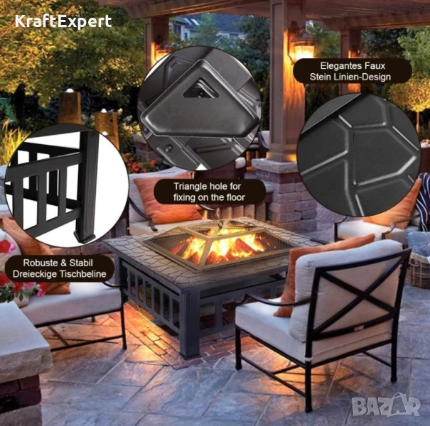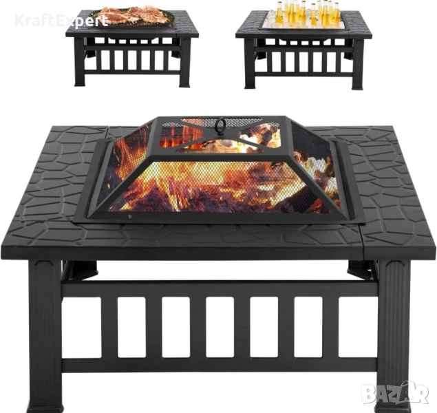 Открийте съвършеното допълнение към вашата градина или вътрешен двор с новата мултифункционална 3в1 маса “Fire Pit”! Тази елегантна и здрава маса комбинира стил и функционалност, превръщайки всяка ваша среща в запомнящо се преживяване. С нея получавате BBQ грил, уютна камина и освежаваща ледарка в едно – перфектно за забавление през цялата година.Със своята широка стоманена решетка с дължина от 60 см, “Fire Pit” предлага достатъчно място за приготвяне на вкусни ястия на открито – от сочни меса до свежи зеленчуци. Изработена от висококачествена стомана и с уникален декоративен кант, тази маса не само е здрава, но и придава модерен стил на всяко пространство.Лесно демонтиращата се конструкция прави “Fire Pit” идеална за къмпинг или за удобно съхранение, когато не се използва. Включените аксесоари – подвижна скара, мрежест капак и покер – ви дават всичко необходимо за пълноценен комфорт. Подходяща за използване с дърва, въглища или други горива, тази маса осигурява топлина и уют във всяка обстановка.*Комплектът включва и предпазно покривало за пълна защита на вашата инвестиция.Размери: 82х82х42 см. Преобразете откритите пространства и се насладете на незабравими моменти със семейството и приятелите с “Fire Pit”!