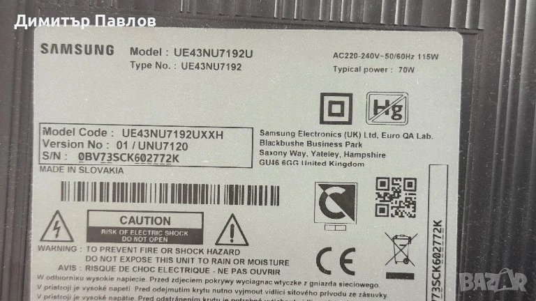 SAMSUNG UE43NU7192U Телевизор на Части → Обява 50485054