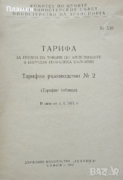Тарифа за превоз на товари по железниците в НРБ. Тарифно ръководство N°2, снимка 1 - Други - 50485425 Тарифа за превоз на товари по железниците в НРБ. Тарифно ръководство N°2, снимка 2 - Други - 50485425 1/2