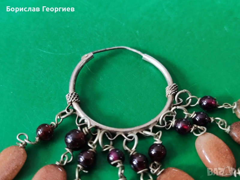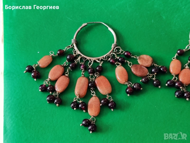 Сребърни обеци с гранати и ахат → Обява 50485497
