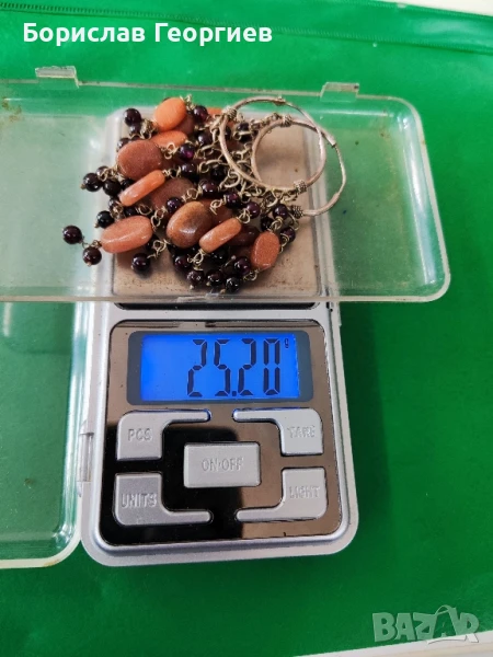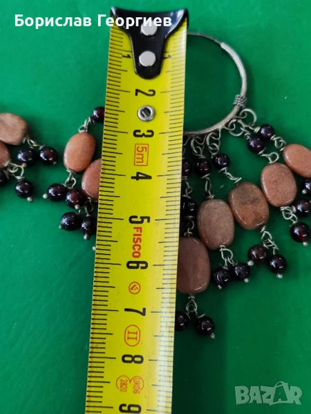Ринговете са сребърни,но висящите части не са.Камъните са ахат и гранати.