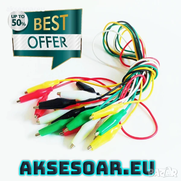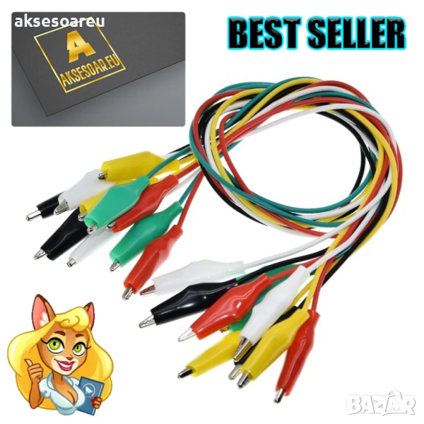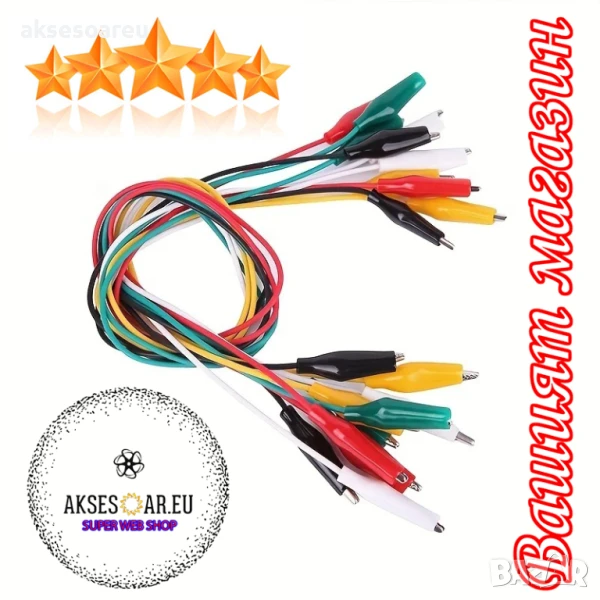 1. 10 тестови кабела в 5 цвята – Включва 10 тестови щипки