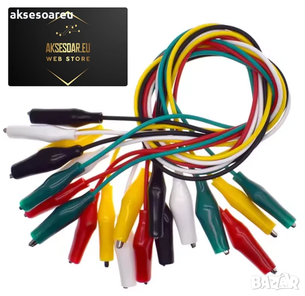 тип „крокодил“ проводници (червени x2, черни x2, жълти x2, зелени x2 и бели x2)
