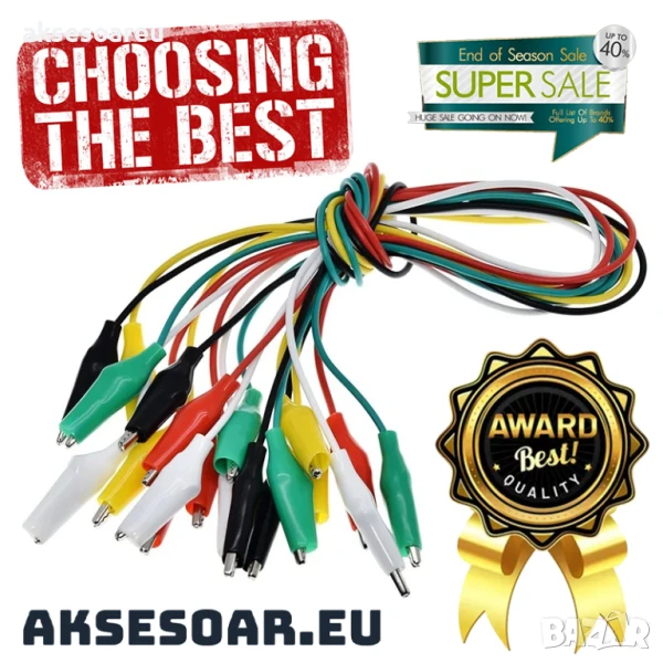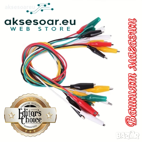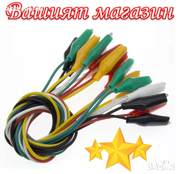 комплект 10 бр. електрически кабели със щипки тип крокодил тестови кабели с