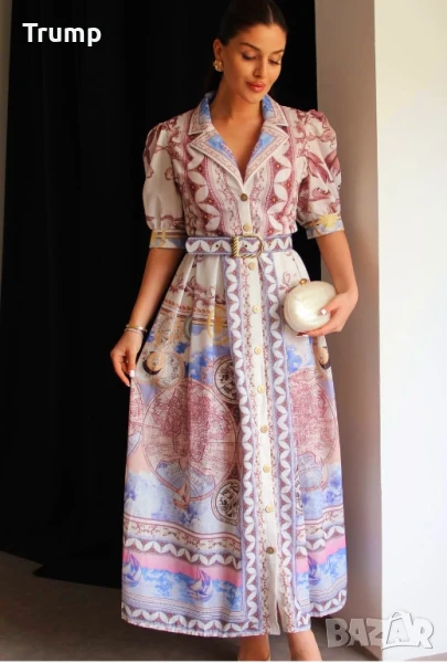 Нежна дълга рокля, елегантна линия, с колан → Обява 50487249