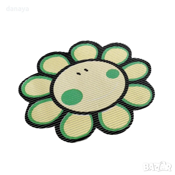 Подарете си комфорт и настроение с тази мека постелка за баня с форма на усмихнато цвете. Изработена от винилов материал, който осигурява издръжливост, водоустойчивост и лесна поддръжка. Горната част е приятна на допир и мека, а долната е с противоплъзгаща основа, за да стои стабилно дори върху мокър под.