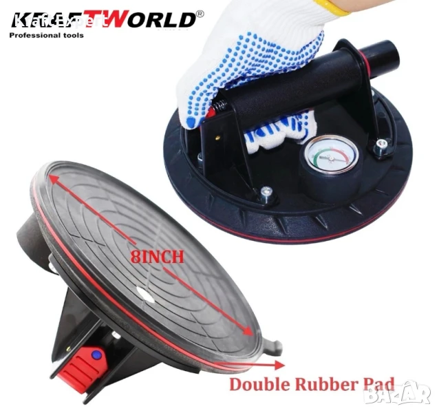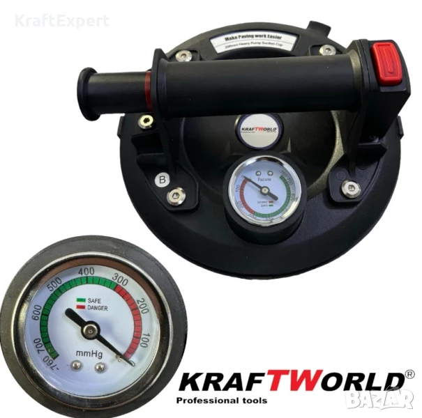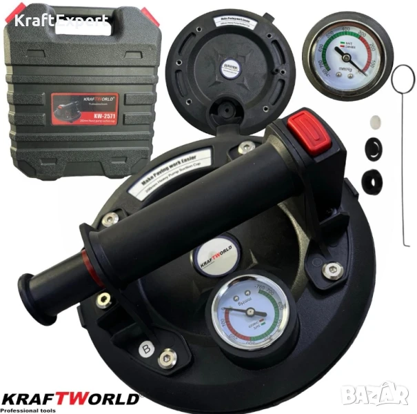 Вендуза с вакуум и манометър KraftWorld Ø200 мм, 130 кг