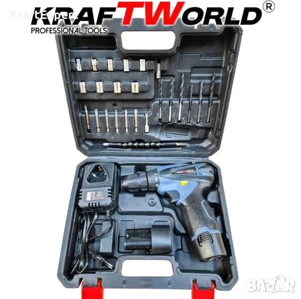 Мощен Акумулаторен Винтоверт KraftWorld с Удължение и Вложки