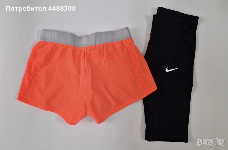 Отлични Nike къси панталони в оранжев цвят с късо клинче. Перфектни за спорт и свободно време. Размер SКлин Nike 7/8 в отлично състояние с връзка и джоб с цип, черен цвят, размер S Цената е за комплекта!