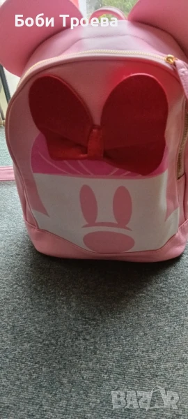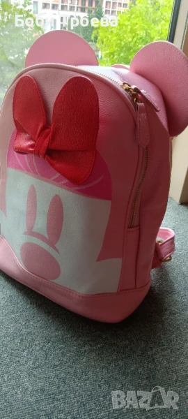 Симпатична Дамска раница от еко кожа, голяма розова с червена панделка → Обява 50488731