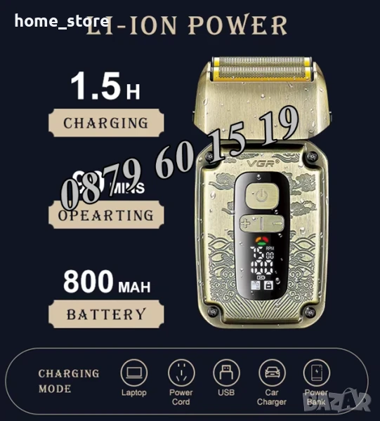 - Литиево-йонна батерия за 90 минути автономна работа