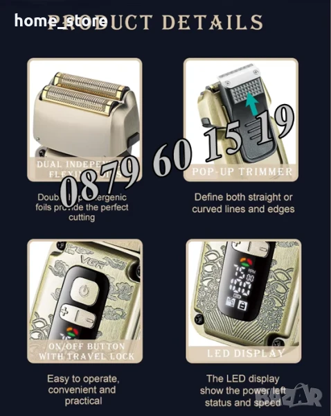 Самобръсначката VGR V-337 е функционален професионален модел, който може да се справи с абсолютно всяка задача, пред която е изправен. Самобръсначката има добри технически характеристики и отлични възможности за модерно подстригване и грижа за брадата, главата и врата. Практичен метален калъф с изискан и оригинален дизайн няма да остави никого безразличен.