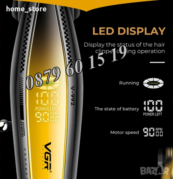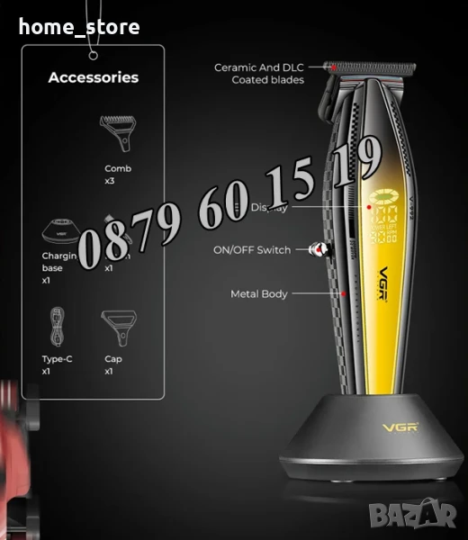 Maшинка за oформяне и подстригване VGR V-992. Изключително прецизна за професионално бръснене, подкъсяване и оформяне на косата, лицевото окосмяване и интимната зонаи батерия с дълъг живот. Тримера има закалено острие, което гарантира дълъг живот със слабо захабяване.