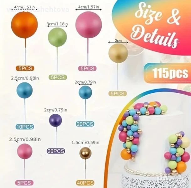 115 броя топчета топки на тел от стиропор за декорация на торта → Обява 50488942