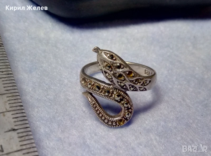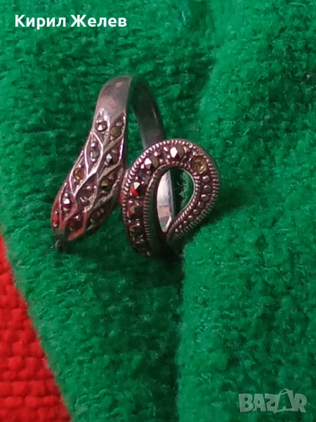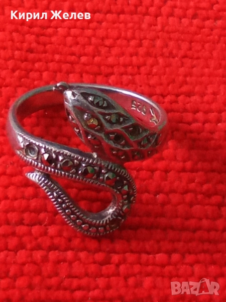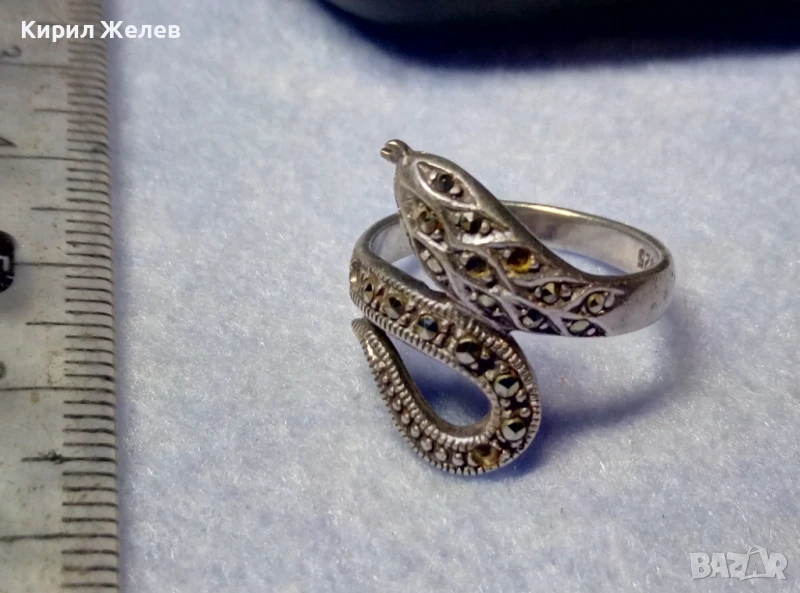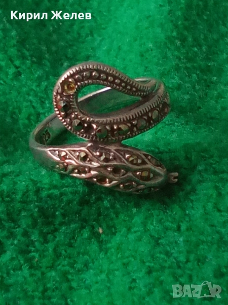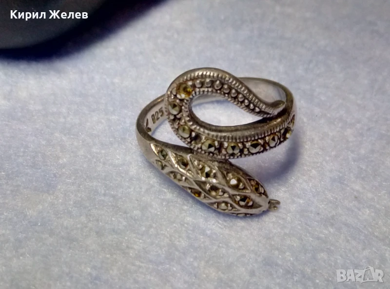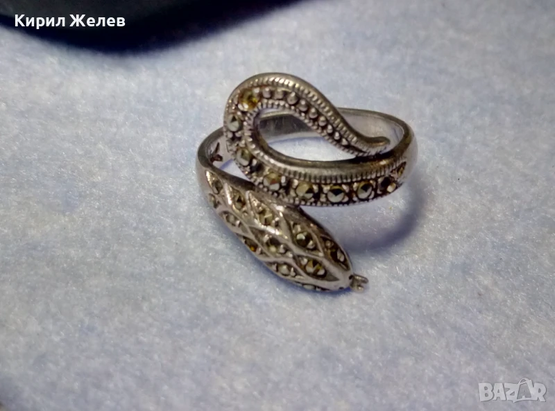 ЗМИЕВИДЕН МАРКОВ МАРКАЗИТЕН СРЕБЪРЕН ПРЪСТЕН СРЕБРО 925 с БЛЕСТЯЩИ ФАСЕТИРАНИ МАРКАЗИТИ 47472