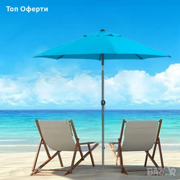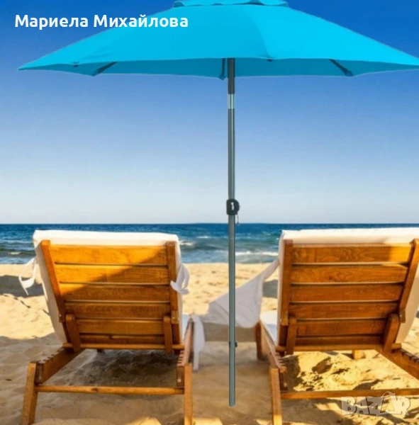 Размери: 240 х 230 см;8 ребра от фибростъкло, Ø18 мм;Стоманен стълб с диаметър Ø28/32 мм;Бяло прахово покритие за защита от корозия;Плат: 160 гр/м² полиестер;Функция за накланяне: Не;Механизъм за отваряне: С натискане;Стойка: Не е включена.