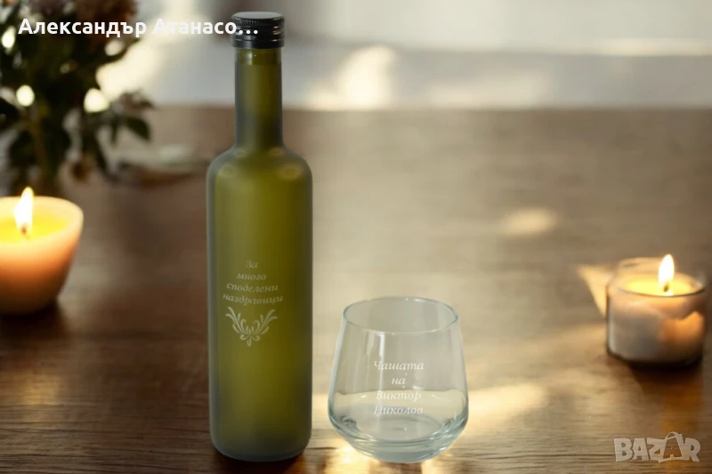 Лазерно гравирани по ваш избор ПРОМО СЕТОВЕ от стъклени чаши и бутилки.