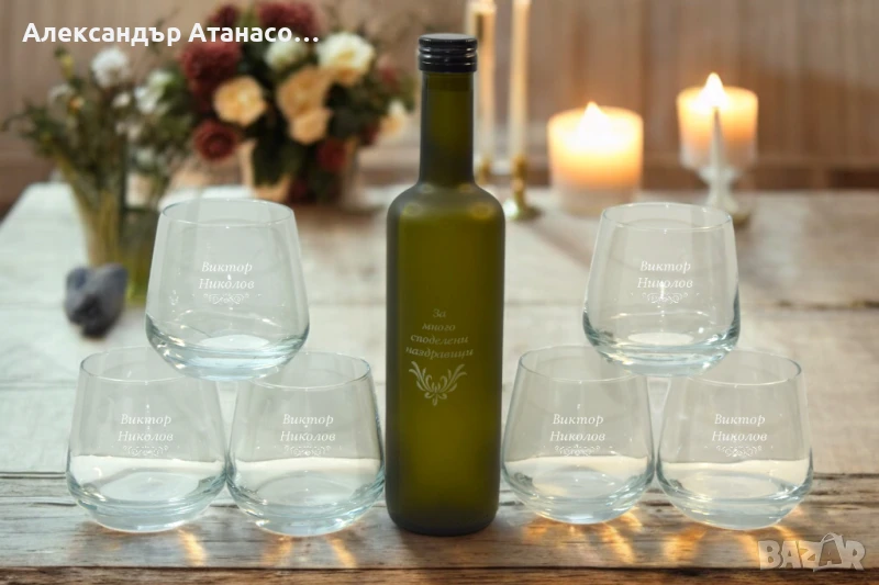 Лазерно гравирани по ваш избор ПРОМО СЕТОВЕ от стъклени чаши и бутилки