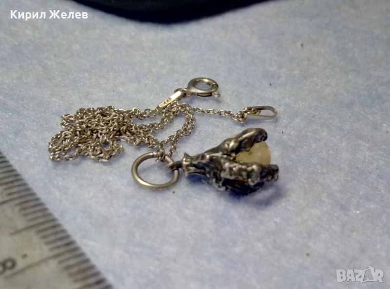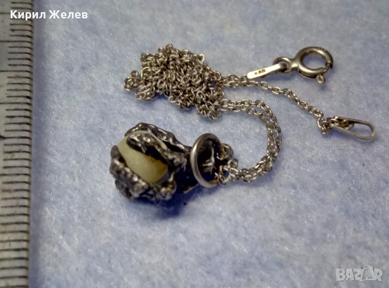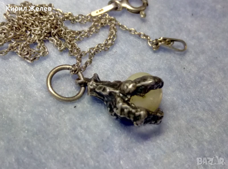 ФИГУРАЛЕН ГОТИК АРТ СРЕБЪРЕН ПЕНДАНТ с НЕЖНА СРЕБЪРНА ВЕРИЖКА МАРКОВО СРЕБРО 925 и ЛУНЕН КАМЪК 40232