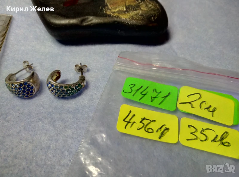 Пускам голяма СЕРИЯ от майсторска ръчна изработка старинни и нови СРЕБЪРНИ БИЖУТА - пръстени, обеци, медальони, гривни, ланци, колиета, брошки - някои са инкрустирани със скъпоценни или полускъпоценни камъни. Всичките са ТЕСТВАНИ ПРОФЕСИОНАЛНО върху лидийски камък с пробер - киселина за сребро, като особено по-старите, ръчно изработени и без маркировка които са, е заснето и резултата на камъка - яркочервеният цвят при натъркване и капване на киселината показва, че са от масивно СРЕБРО ВИСОКА ПРОБА. Има и накити от САЧАН /нископробна сребърна сплав, с която са работели старите майстори - куюмджии от периода на ВЪЗРАЖДАНЕТО и края на 19-ти век/, мед, бронз и благородна стомана с позлата или посребряване. Снимките ги ОНАГЛЕДЯВАТ! Имам НАД 27000 обяви в профила си - За ВСЕКИ по НЕЩО...! Изпращам по Еконт или Спиди с опция Преглед/Тест и отстъпка-транспорт.