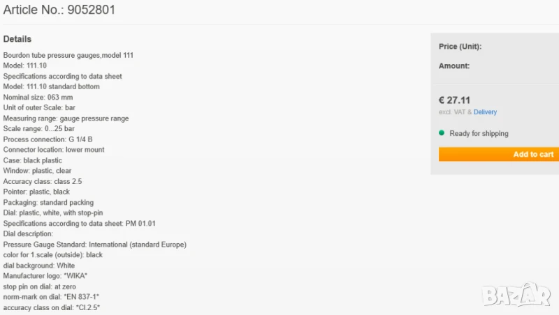 За допълнителна информация посетете shop.wika.com/en-en/111_10_111_12.WIKA?tab=orderdata&highlightedText=9052801 ;