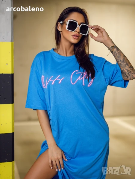 Дамска туника ФЛАМИНГО с къс ръкав, набрана отпред и надпис Miss City. Голяма апликация с фламинго на гърба.