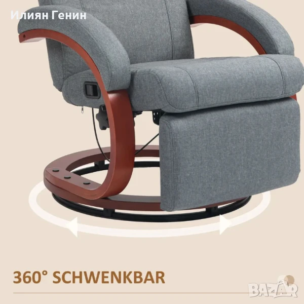 HOMCOM Фотьойл с разтегателна облегалка със сгъваема поставка за крака, въртящ се, накланяща се облегалка, ленен вид, до 140 кг, сив - 400.00лв.