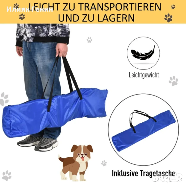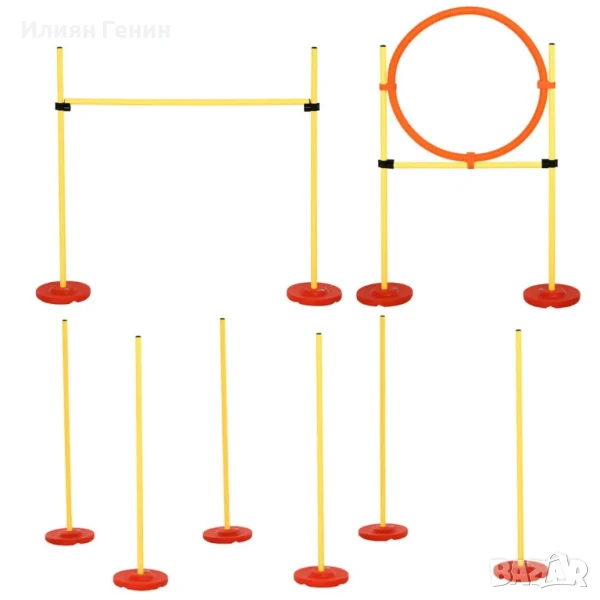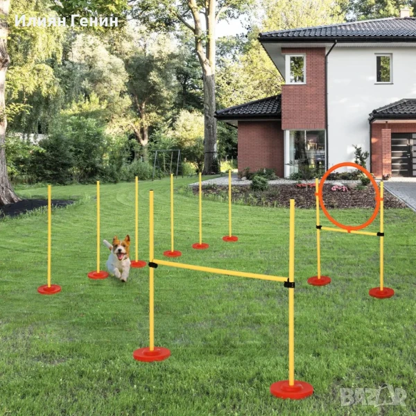 РАЗНООБРАЗЕН: С този комплект за аджилити можете не само да тренирате бягане с препятствия и слалом с кучето си, но и да скачате през обръч.