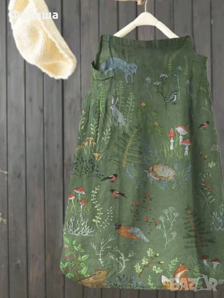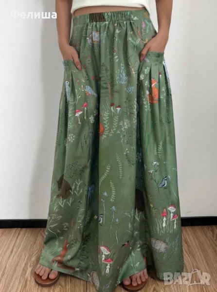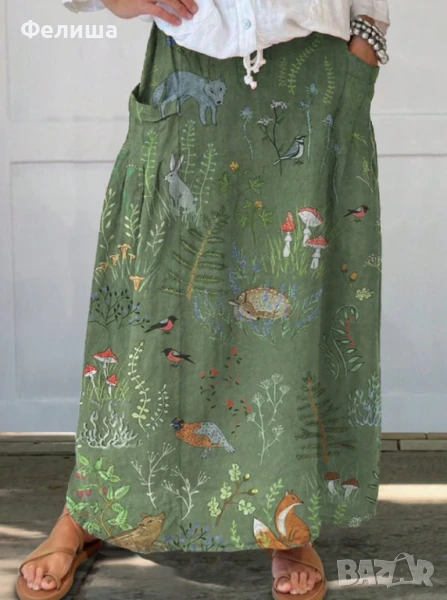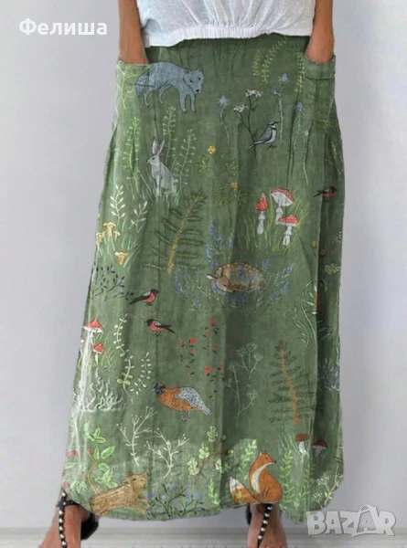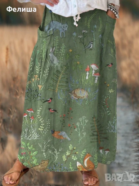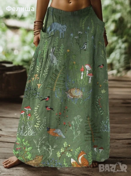 Пленително Касива Дълга Пола - Приказен Горски Свят с Червени Гъби и Животинки → Обява 50492317