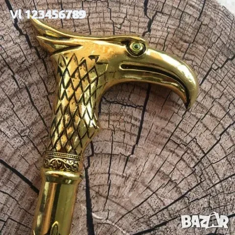 Ръкохватка - Глава на "Г ОБРАЗНА ГЛАВА НА ОРЕЛ", двуделен, с размери около 100 х 90 мм, изработен от сплав на цветни метали,фин детаил, галванично покритие с цвят "златен".