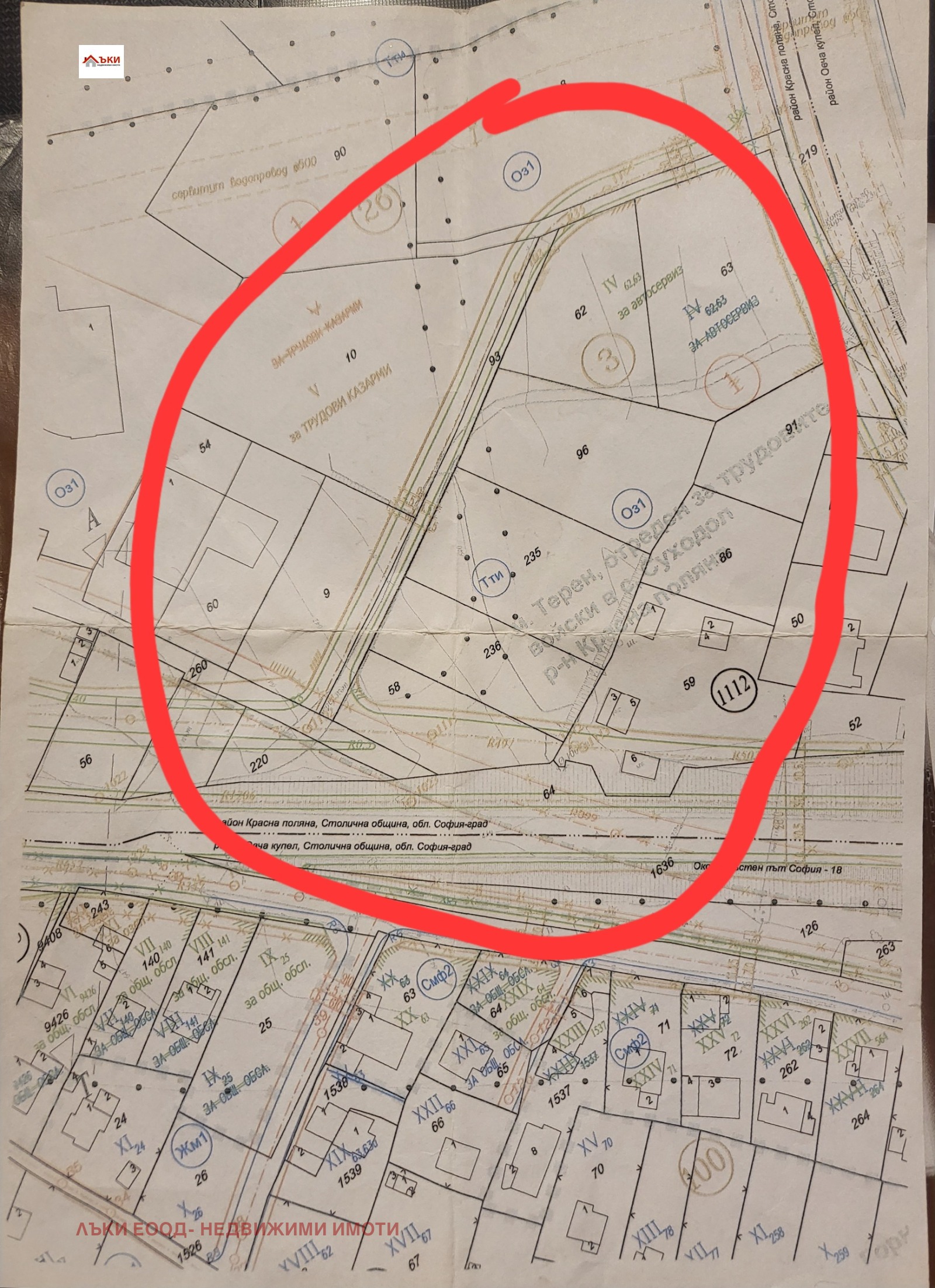 ПАРЦЕЛ с 50м. лице при разширението на новия 'Околовръстен път' и 50м. лице на новия път, който ще свързва Горна Баня с Околовръстен път.