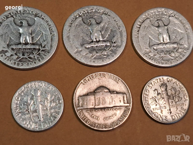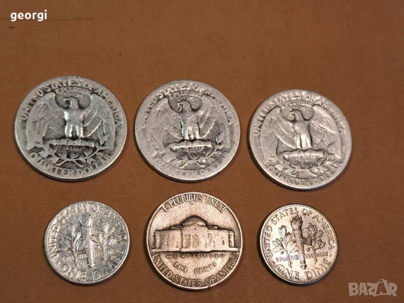 6 американски сребърни монети 5 цента, 10 цента, четвърт долар → Обява 50493033