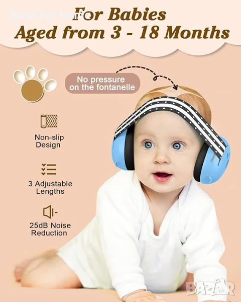 Без натиск върху фонтанелата: Фонтанелата на бебетата под 18 месеца все още не е затворена, което прави главите им особено крехки; Регулируемите бебешки слушалки Lilian&Gema са специално пригодени за тази възрастова група, с мека лента за глава, която приляга плътно, без да упражнява прекомерен натиск; Осигуряват оптимален комфорт и защита, гарантирайки безопасността и благополучието на вашето мъниче.