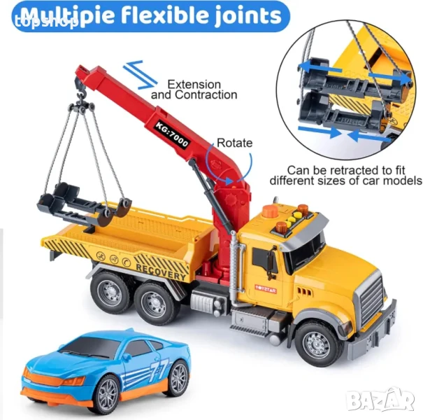 Колите играчки Много части са прибиращи се, въртящи се и т.н. Ремаркето може да спасява коли с различни размери.