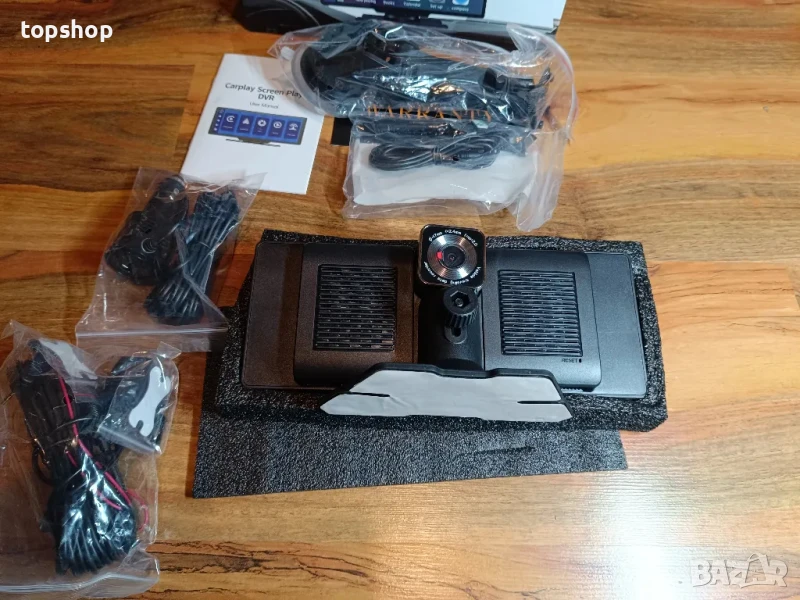 Apple Carplay и Android Auto, 10,26 инча, сензорен екран, предна камера 1080P FullHD, задна камера 720p, медиен плейър, гласов асистент, FM предаване, Bluetooth, универсална съвместимост 8-24V, черен, производство от A&A.