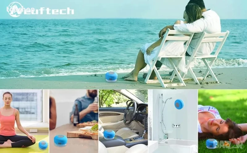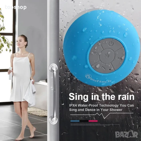 Водоустойчив високоговорител за душ - Вземете душ с цялата група и пейте заедно с любимите си песни. Позволява ви да го използвате където и когато желаете (в банята, на плажа, в басейна, тоалетната, на риболов, разходка с лодка и т.н.)