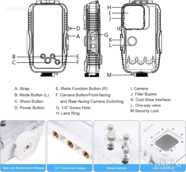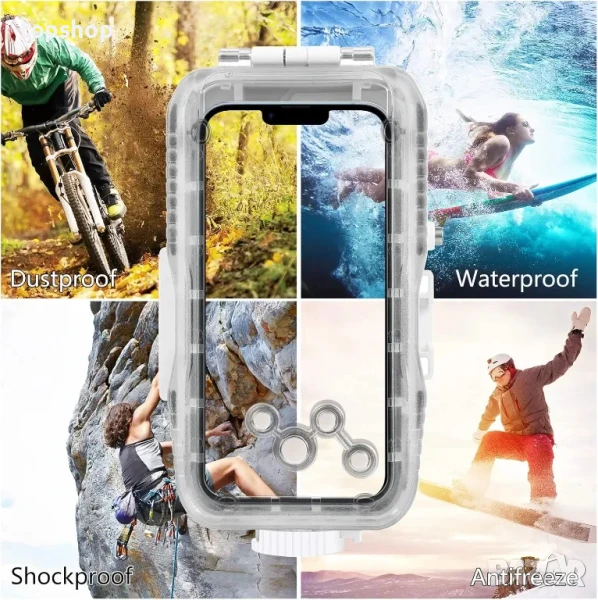 【Най-голяма дълбочина на гмуркане】Калъфът за гмуркане е изработен от n издръжлив и устойчив на корозия материал, водоустойчив и запечатан с технология за изпомпване с еднопосочен клапан, за да направи калъфа по-херметичен и да предотврати проникването на вода във водоустойчивия калъф. Можете да използвате вашия iPhone под вода до 40M/131FT с увереност и да правите ясни изображения.