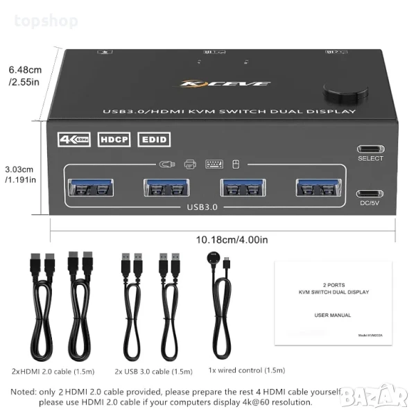 НОВ, ТЕСТВАН, ПЕРФЕКТЕН KVM Switch суич за 2 компютъра към 2 монитора, HDMI KVM Switcher USB 3.0 версия, 4K@60Hz HD резолюция, поддръжка на копиране и разширен дисплей