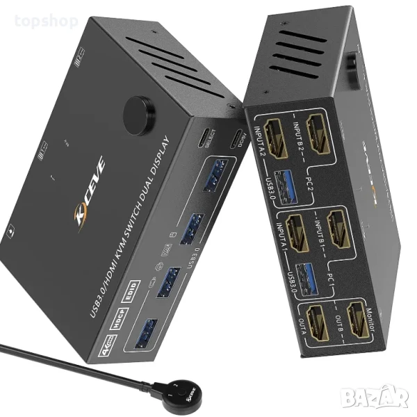 НОВ, ТЕСТВАН, ПЕРФЕКТЕН KVM Switch суич за 2 компютъра към 2 монитора, HDMI KVM Switcher USB 3.0...