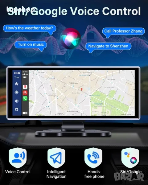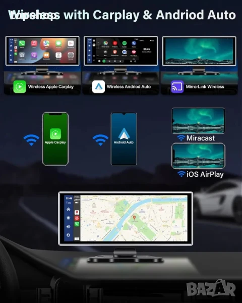Интелигентен гласов контрол и навигация в реално време: Осигурява интелигентна навигационна система в реално време чрез безжична връзка с екрана Carplay, няма нужда да актуализирате карти често или срещу допълнително заплащане. Android Auto Carply поддържа гласови команди, можете да изпращате гласови команди за достъп до Si.ri / Go.ogle Assistant, много лесен за използване. Освободете ръцете си, няма нужда да докосвате екрана за по-безопасно шофиране.