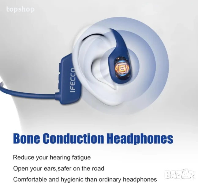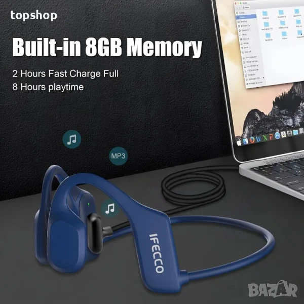 НОВИ IFECCO водоустойчиви слушалки с костна проводимост, IP68, Bluetooth, 8GB Вградена памет, MP3